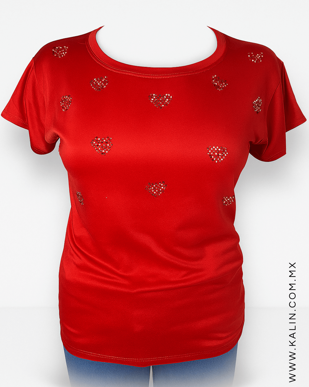Playera Mexicana Roja Corazones - talla/color Grande