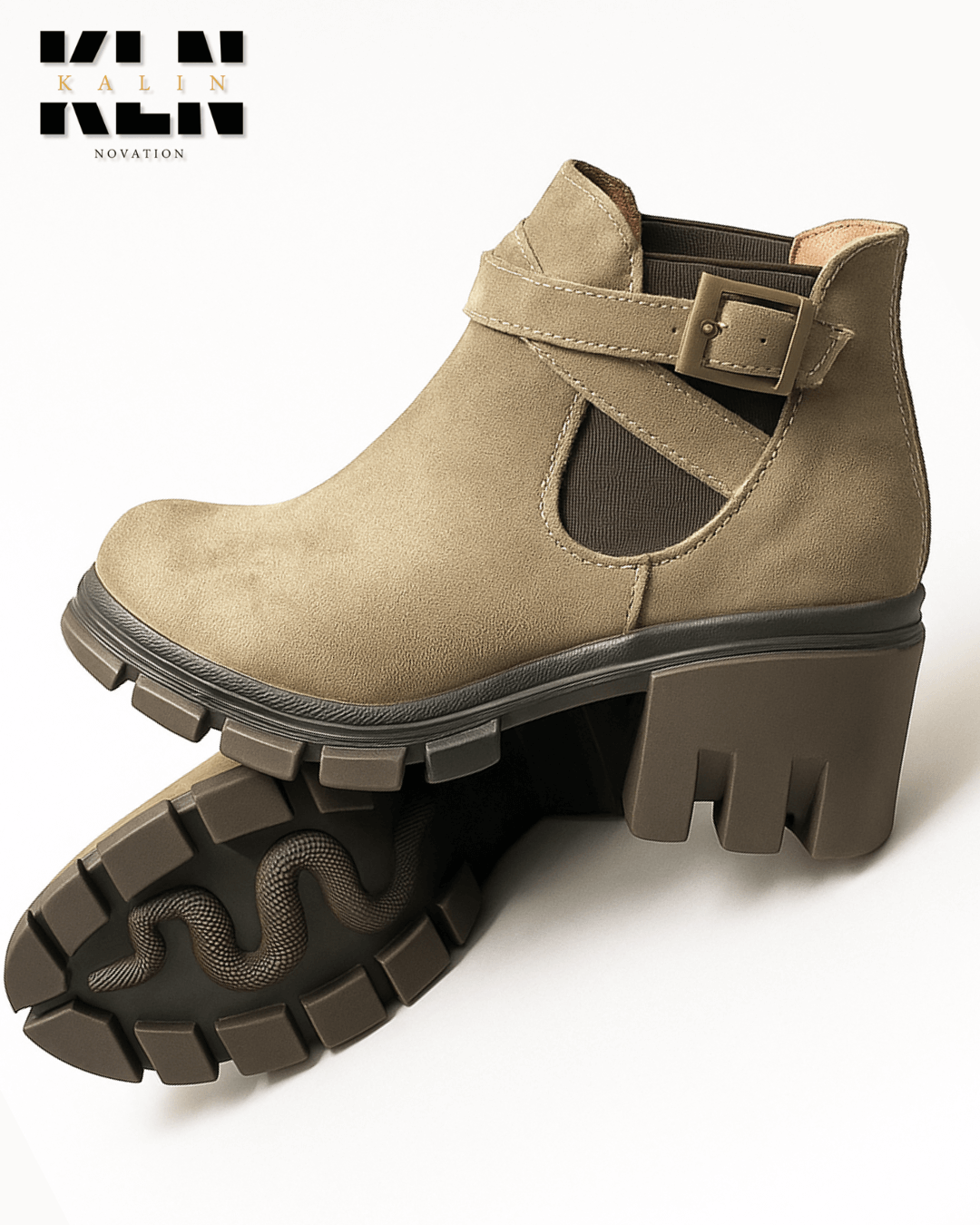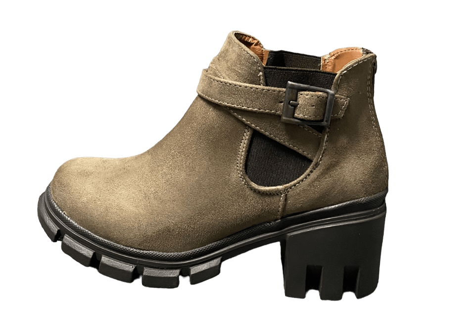 • Material: Durazno Color: Topo Modelo: Botín con hebilla