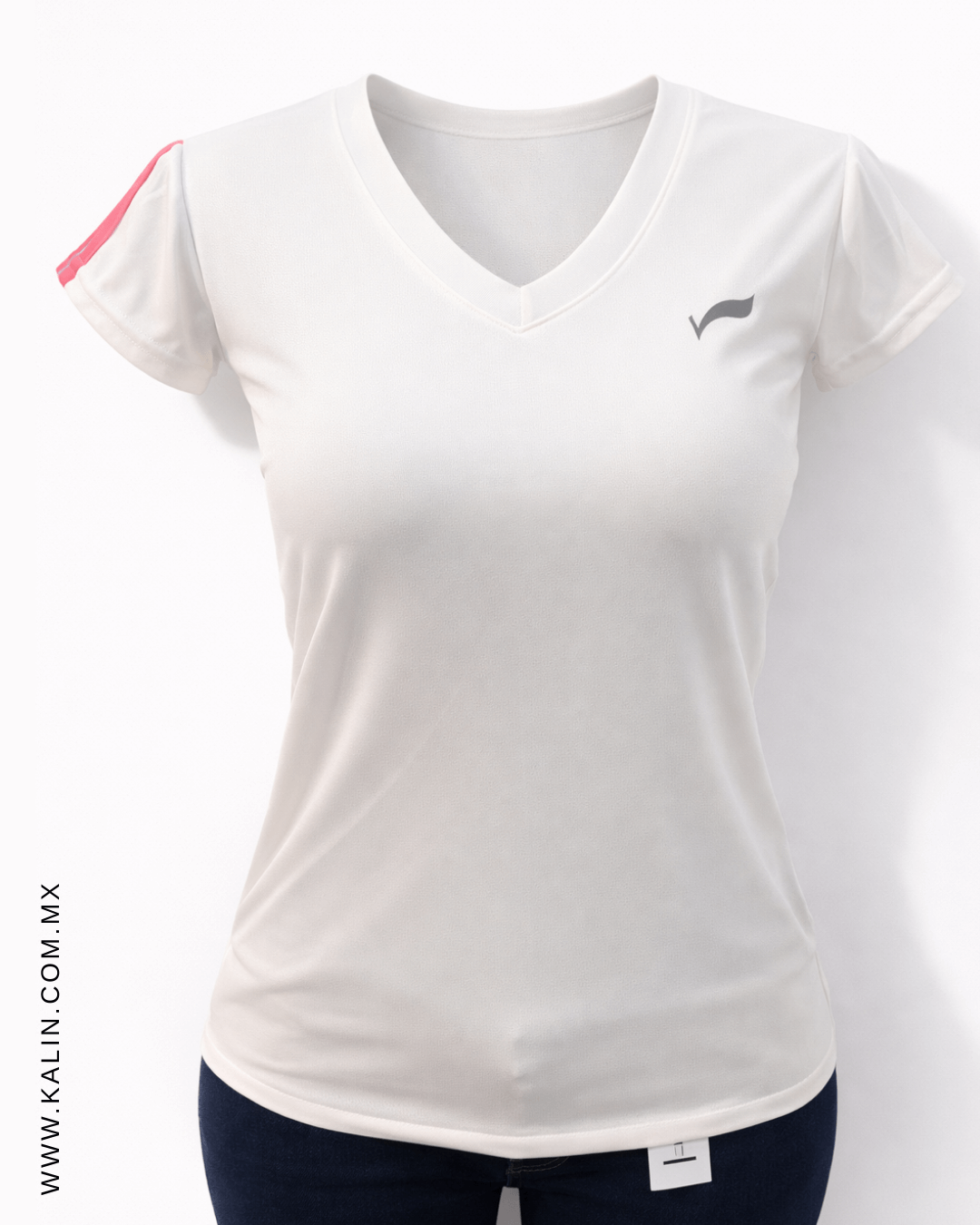 Playera Deportiva Blanca Líneas Rosas