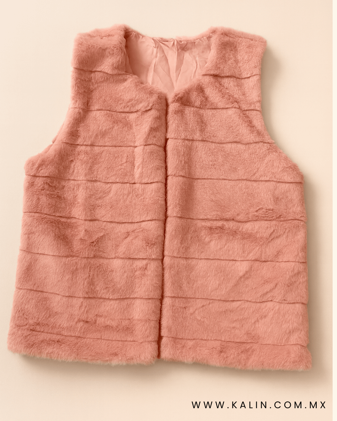Chaleco Rosa Claro Peludo En Líneas