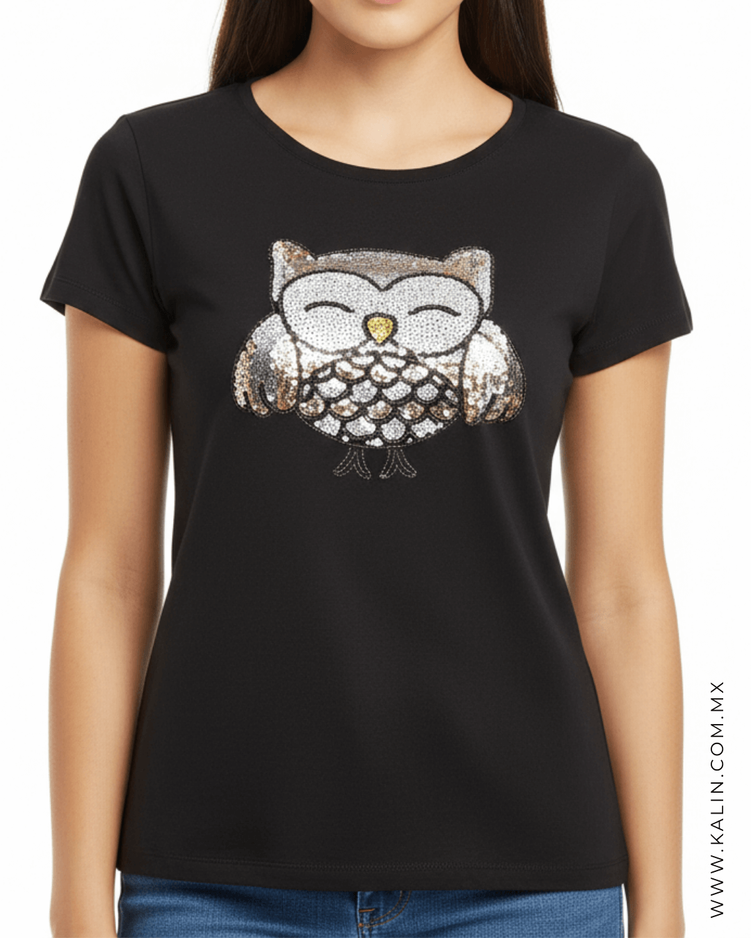 Playera Lentejuela Búho Gris