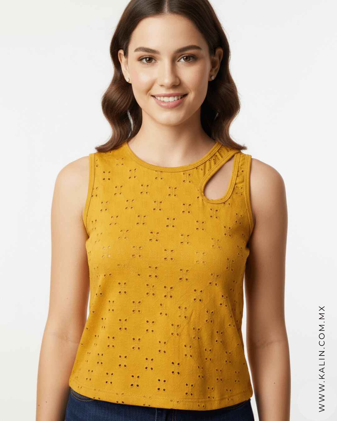Playera Diseño Flores Mostaza - talla/color Unitalla