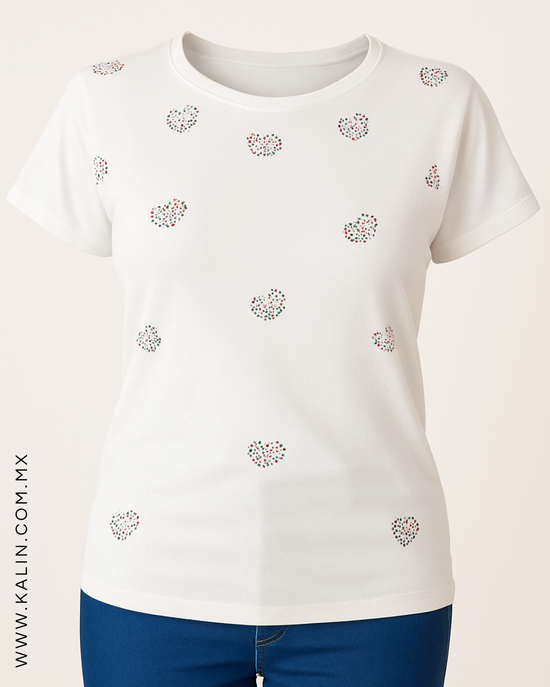 Playera Mexicana Blanca Corazones