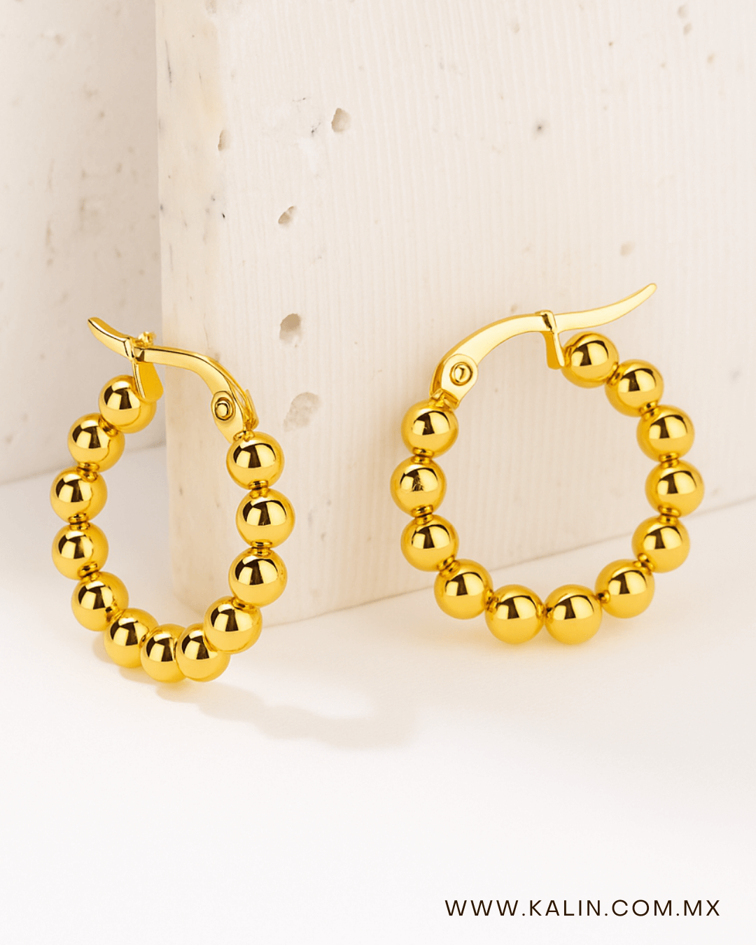 • Aretes De Aro Con Diseño De Cuenta Color: AMARILLO ORO Altura: 2.3 cm, Ancho: 2.1 cm