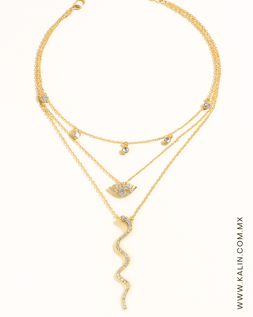 • Collar A Capas Con Diamante de Imitación Ojo Y Diseño De Serpiente Color: Amarillo Oro Largo: 36. 4-41.4 cm