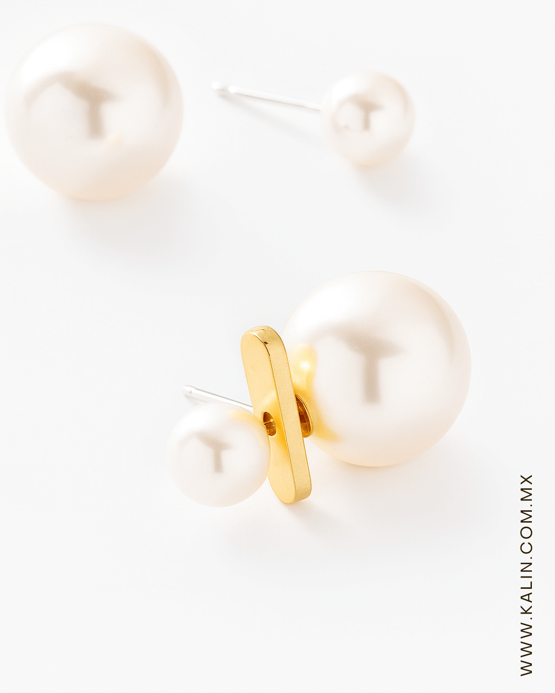 • Aretes Diseño De Doble Perla Color: AMARILLO ORO Altura: 2.6 cm Ancho: 1.4 cm