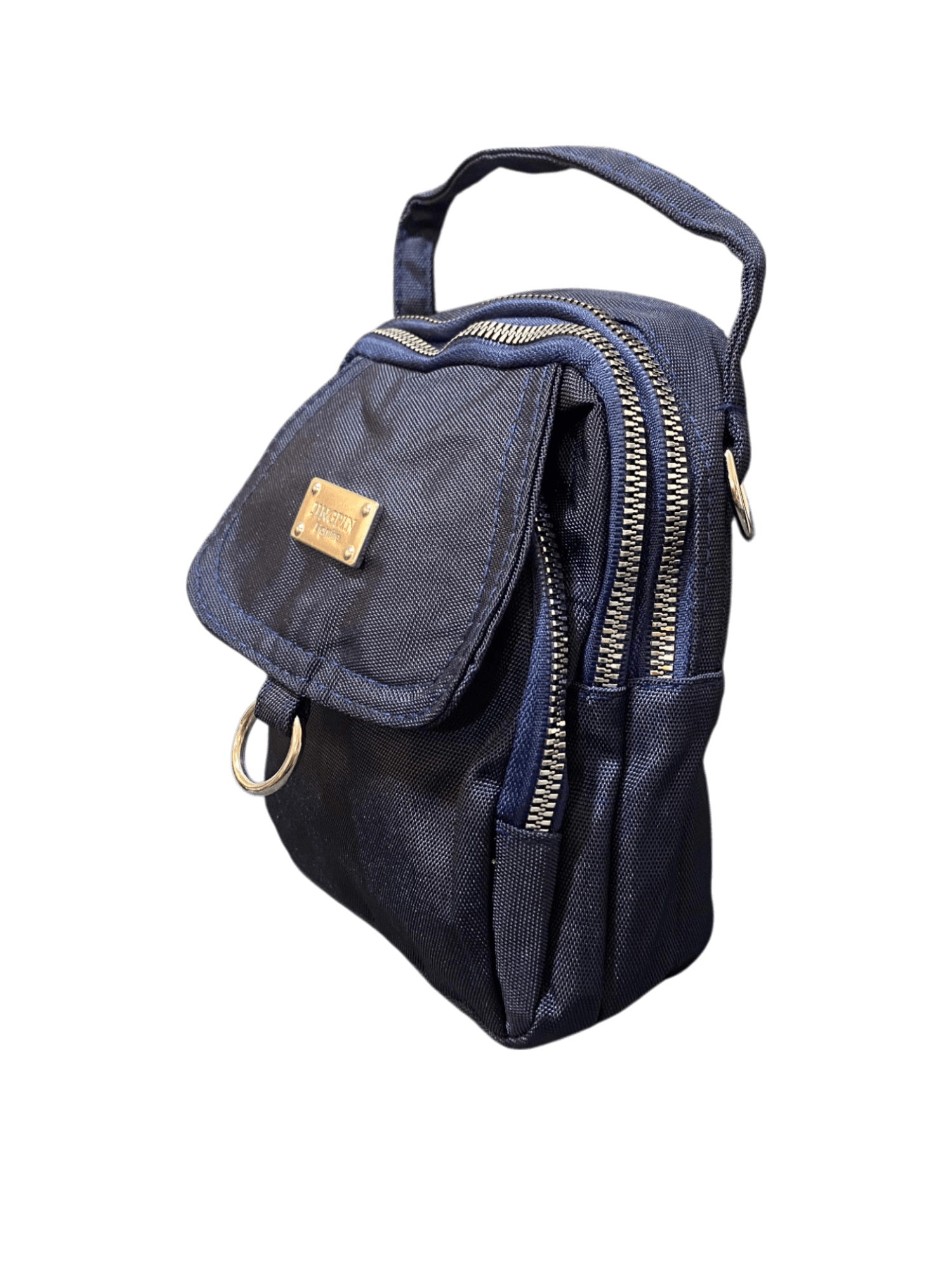 • Color: Azul Marino Dimensiones: 20 cm de alto x 18 cm de ancho Material: Sintético Otra información: Con correa