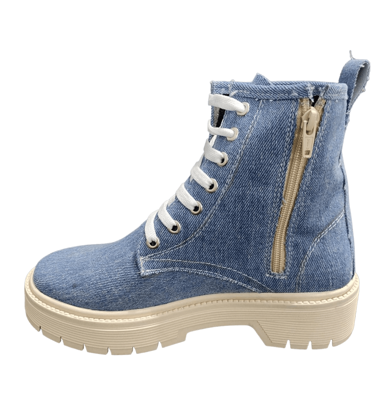 • Material: Sintético Botín Mezclilla Con Cierre Lateral y Agujeta