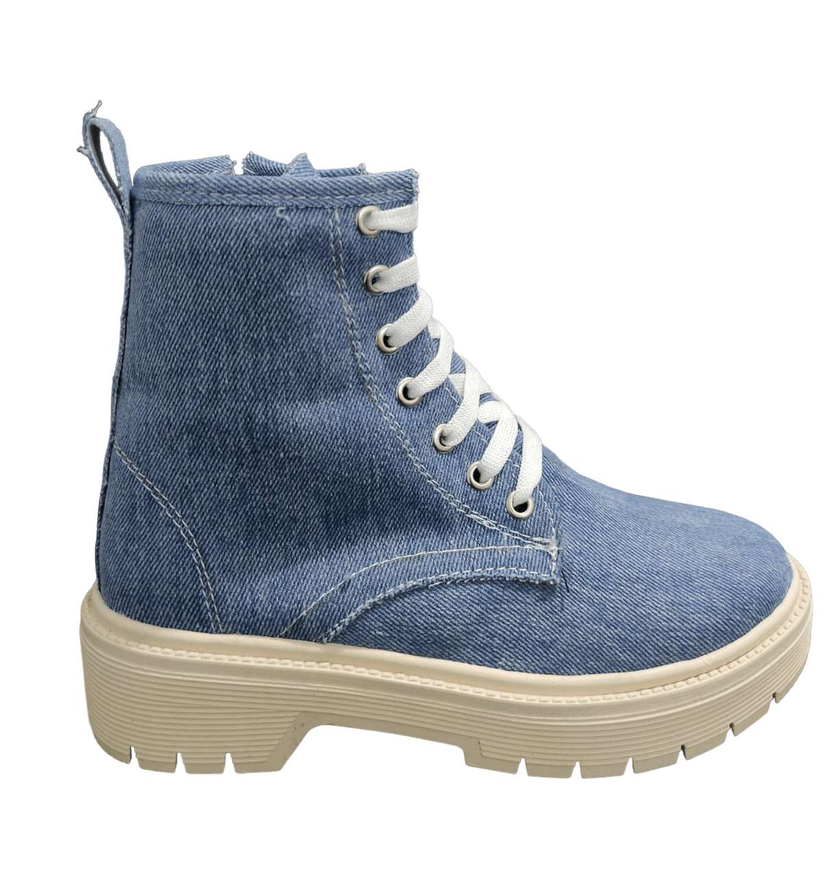 • Material: Sintético Botín Mezclilla Con Cierre Lateral y Agujeta