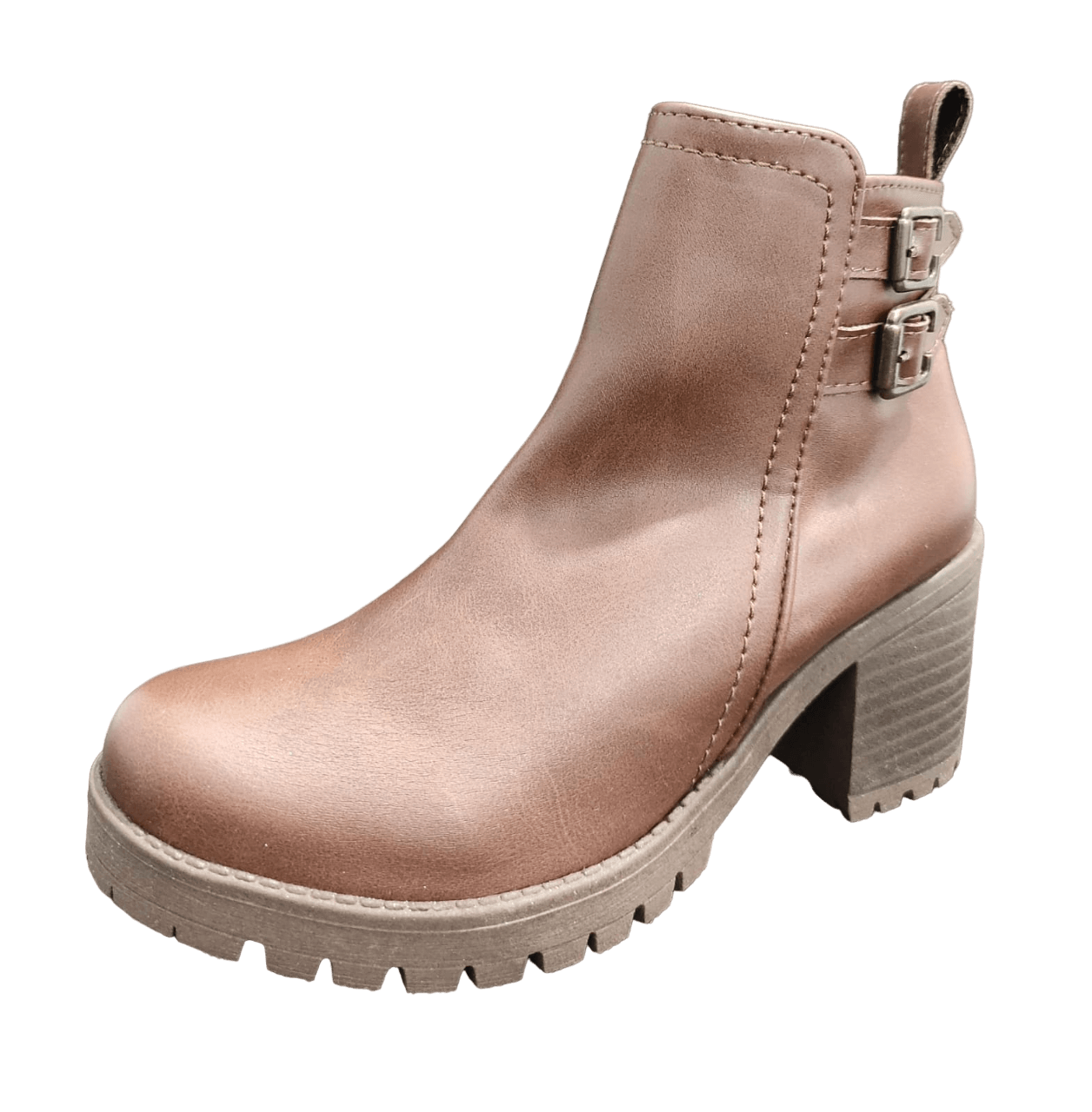 • Material: Sintético Color: Café con cierre Tacón: 6 cm
