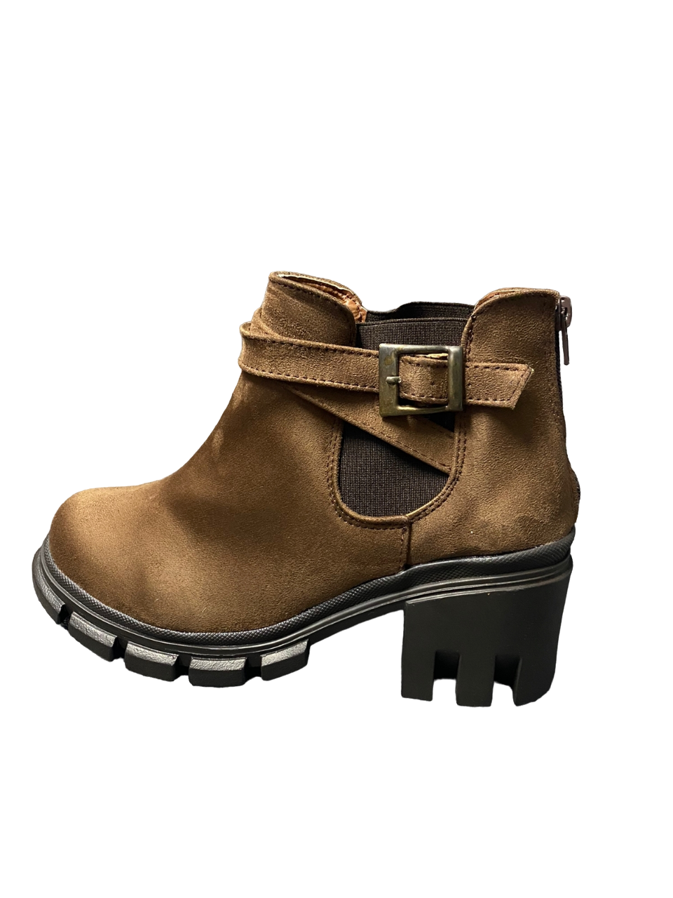 • Material: Piel durazno Color: Madera Modelo: Botín con hebilla y cierre
