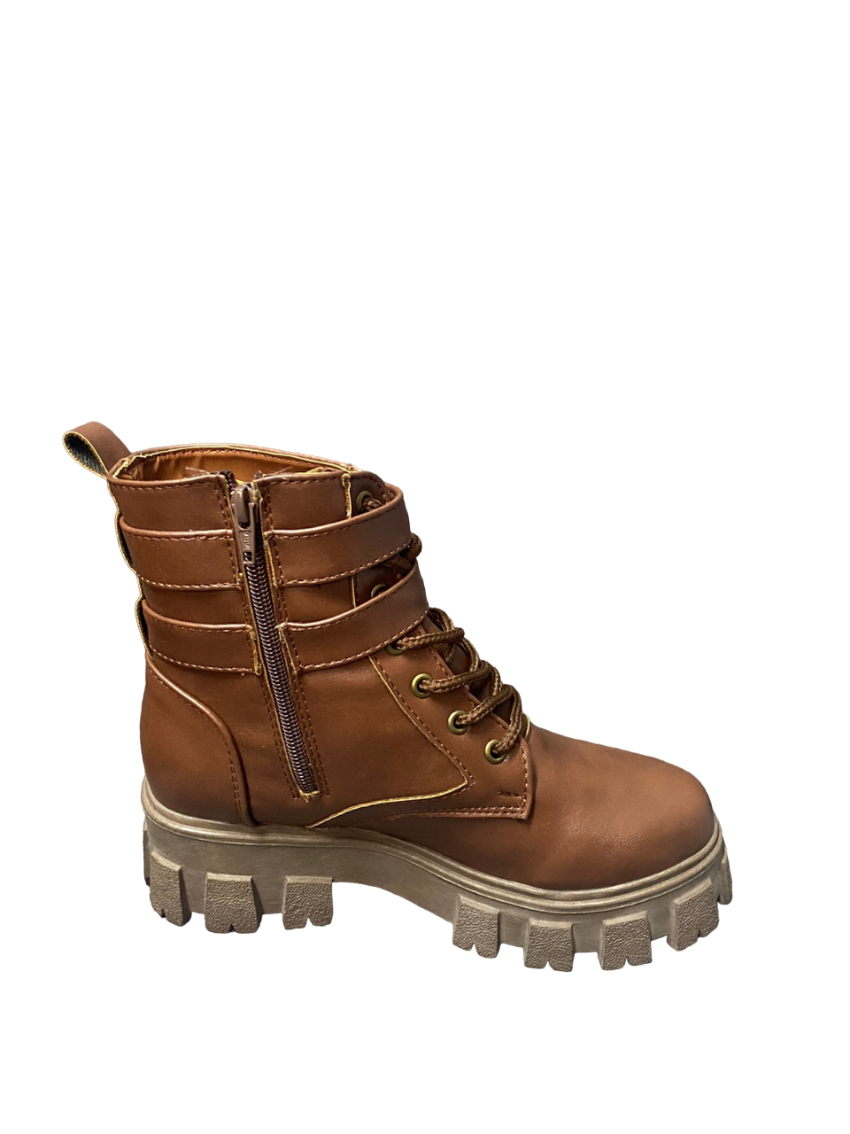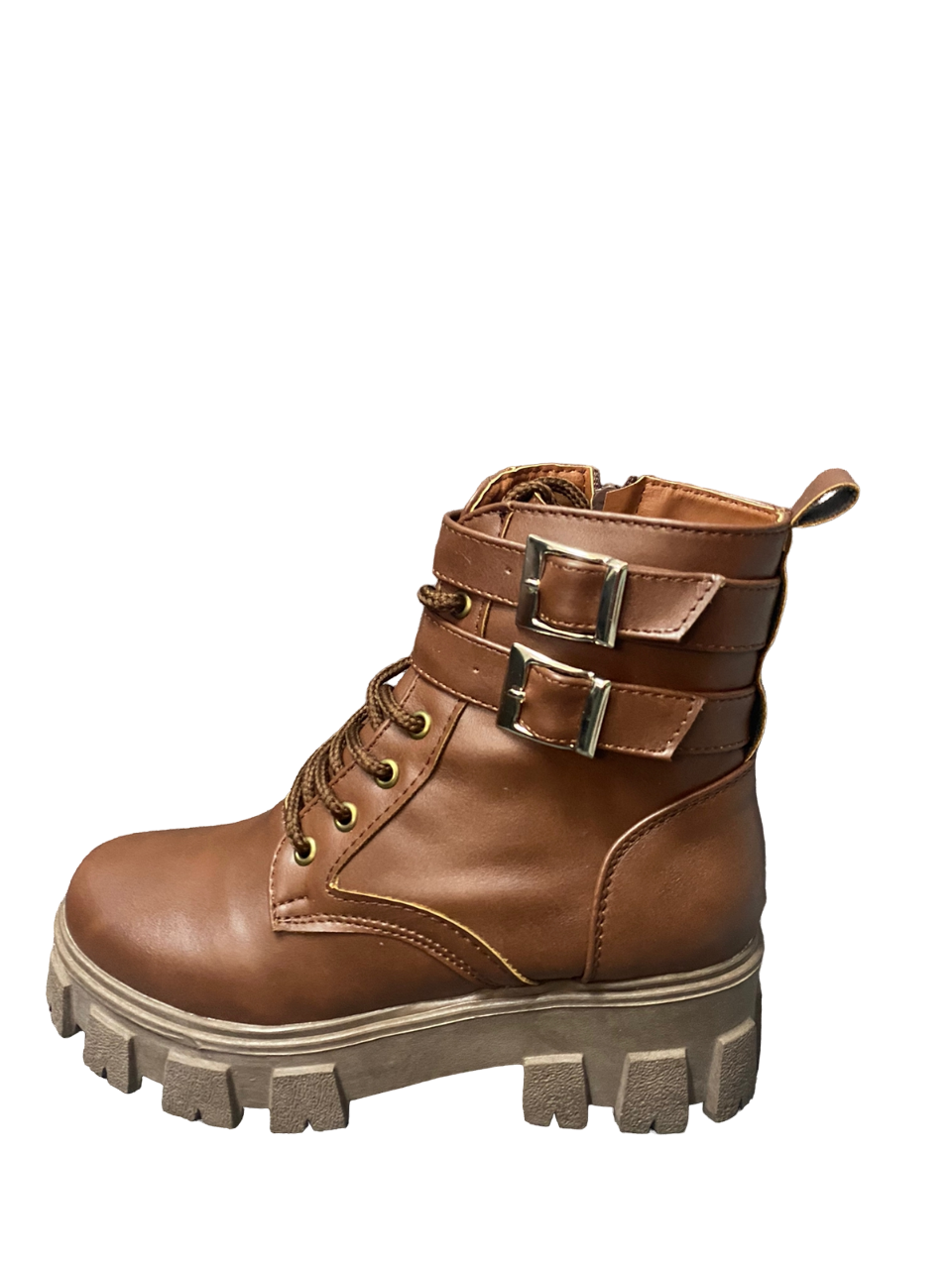 • Color: Café Material: Sintético Modelo: Bota alta doble hebilla