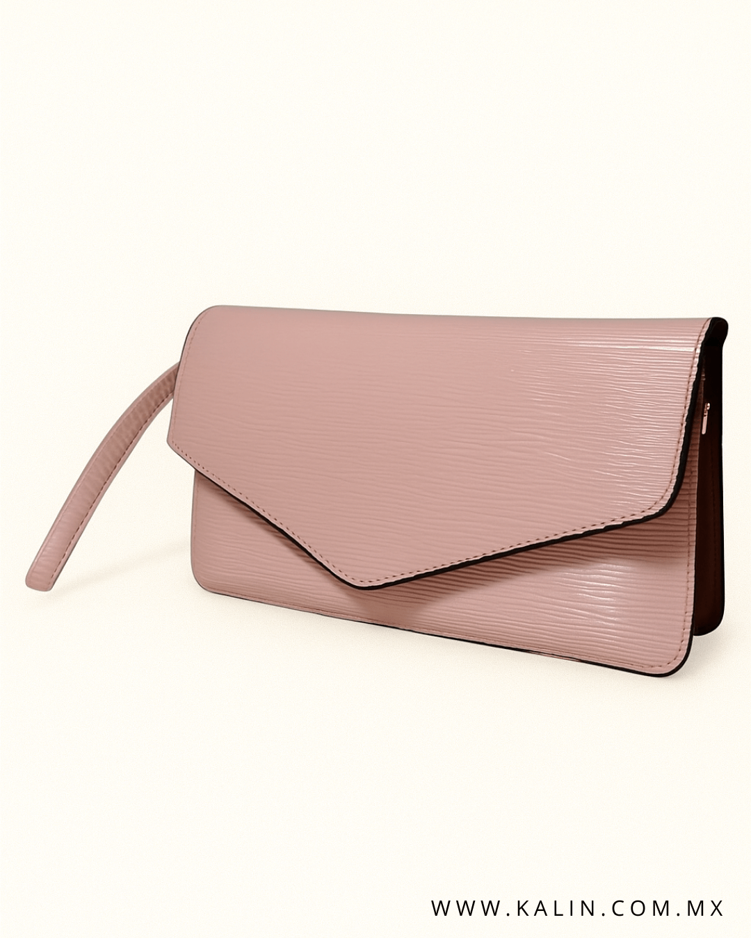• Color rosa con interior café Diseño tipo sobre Dimensiones: 21 cm largo x 12 cm alto Material sintético Otra información: Correa adicional.