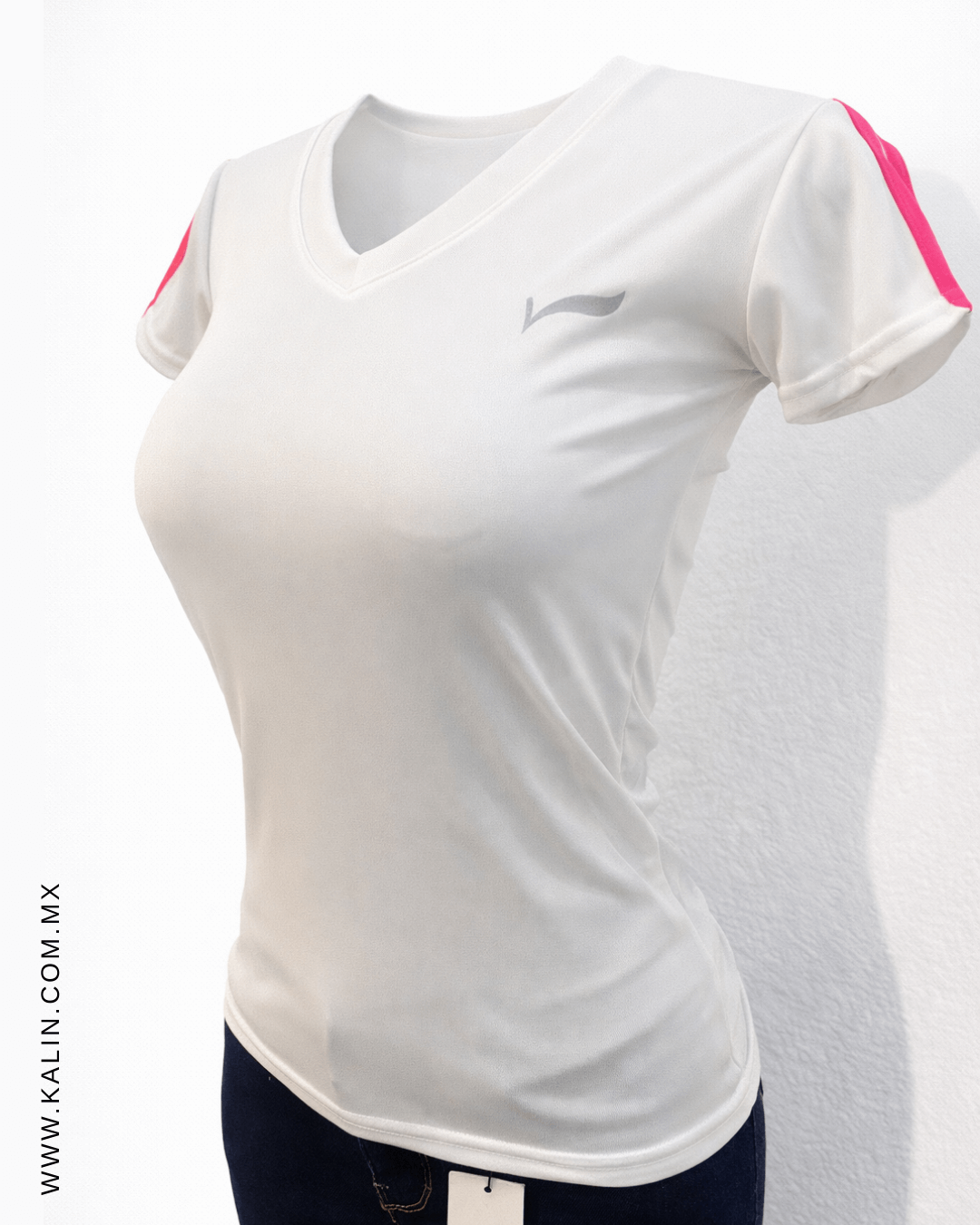 Playera Deportiva Blanca Líneas Rosas
