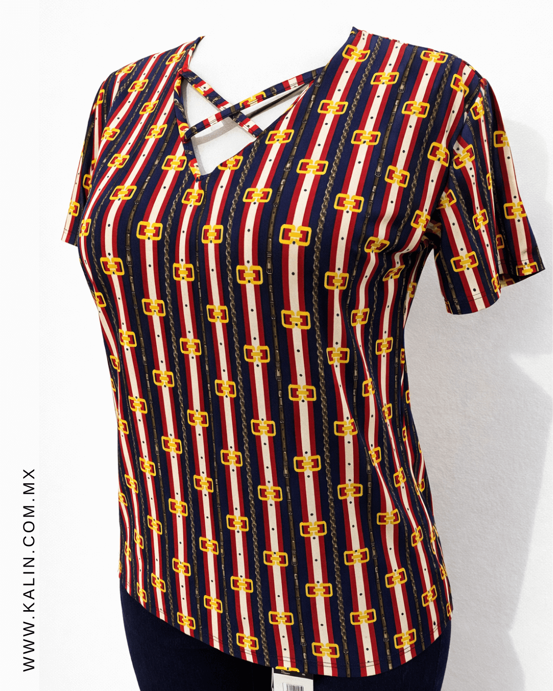 Playera Azul Líneas Amarillas - talla/color Mediana