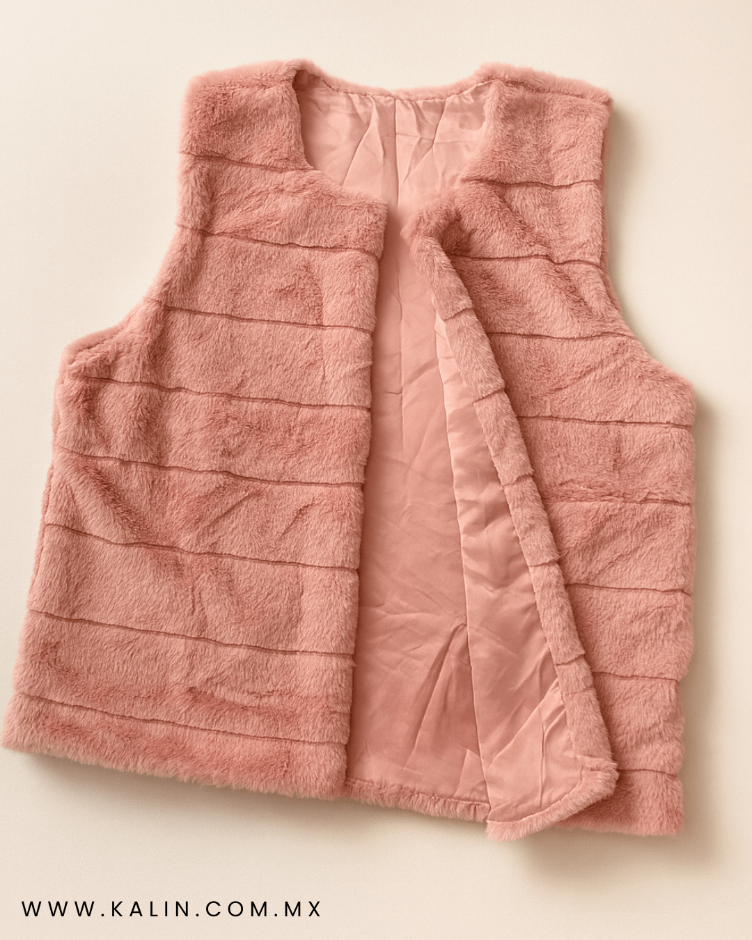Chaleco Rosa Claro Peludo En Líneas