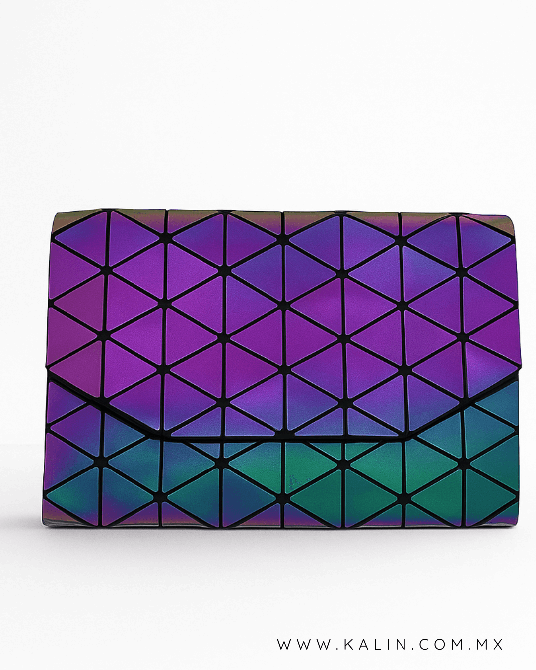 • Crossbody Bao Bao Tipo Sobre Diseño efecto tornasol Material: sintético Dimensiones: 27 cm largo x 12 alto Otra información: Cadena adicional.