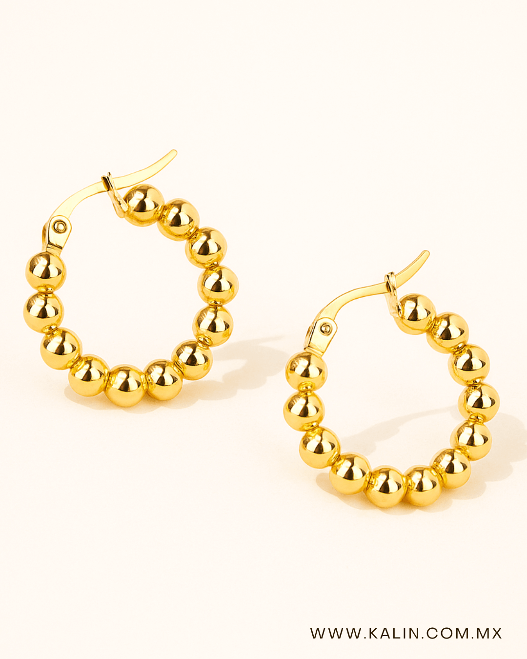 • Aretes De Aro Con Diseño De Cuenta Color: AMARILLO ORO Altura: 2.3 cm, Ancho: 2.1 cm