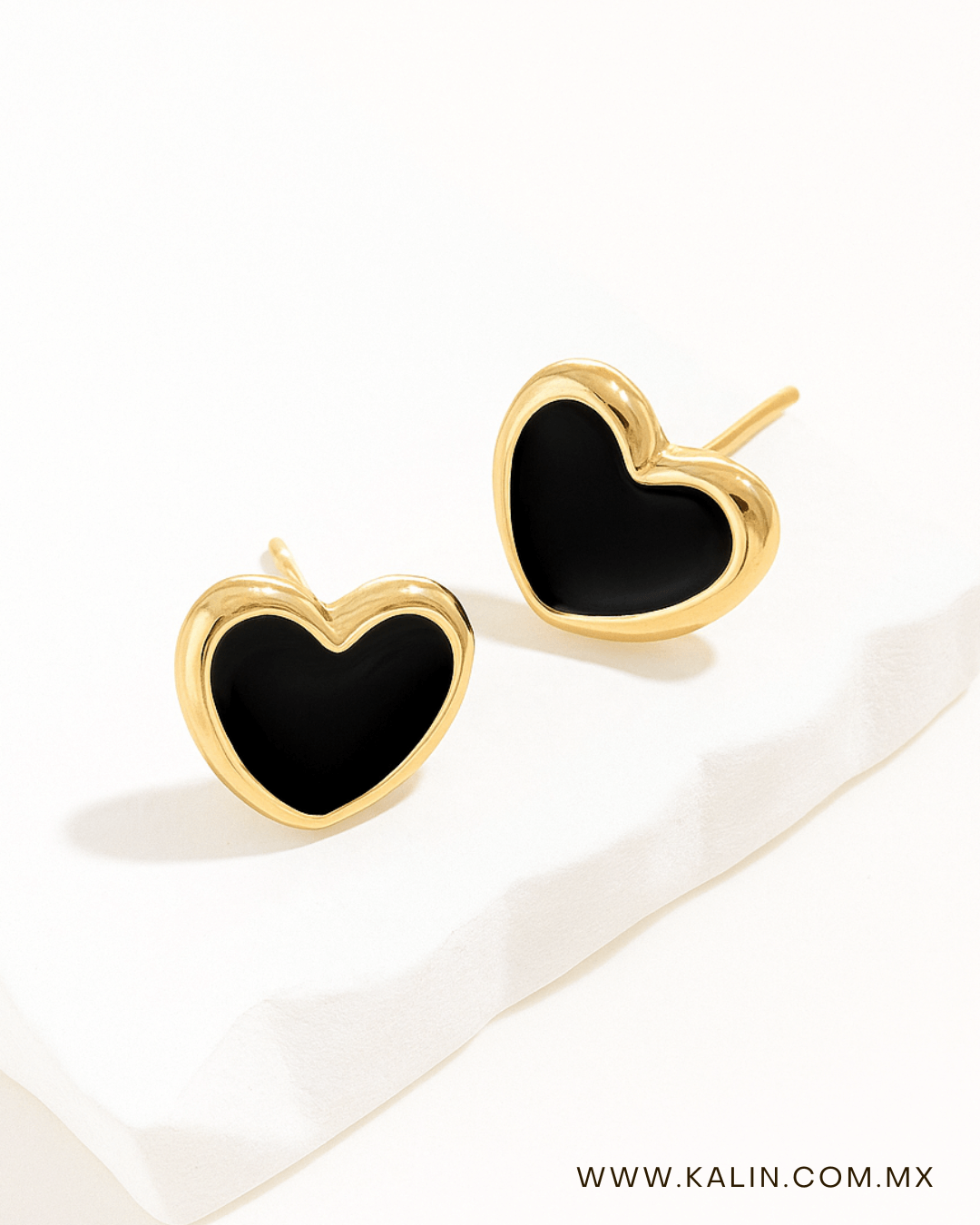 • Aretes Diseño De Corazón Color: NEGRO Y AMARILLO ORO Altura: 1.0 cm Ancho: 1.3 cm