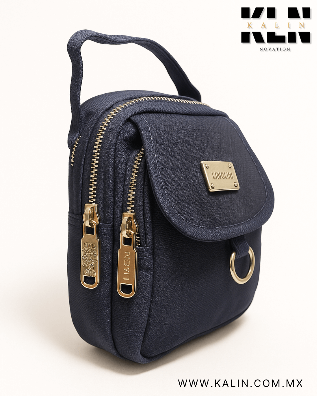 • Color: Azul Marino Dimensiones: 20 cm de alto x 18 cm de ancho Material: Sintético Otra información: Con correa