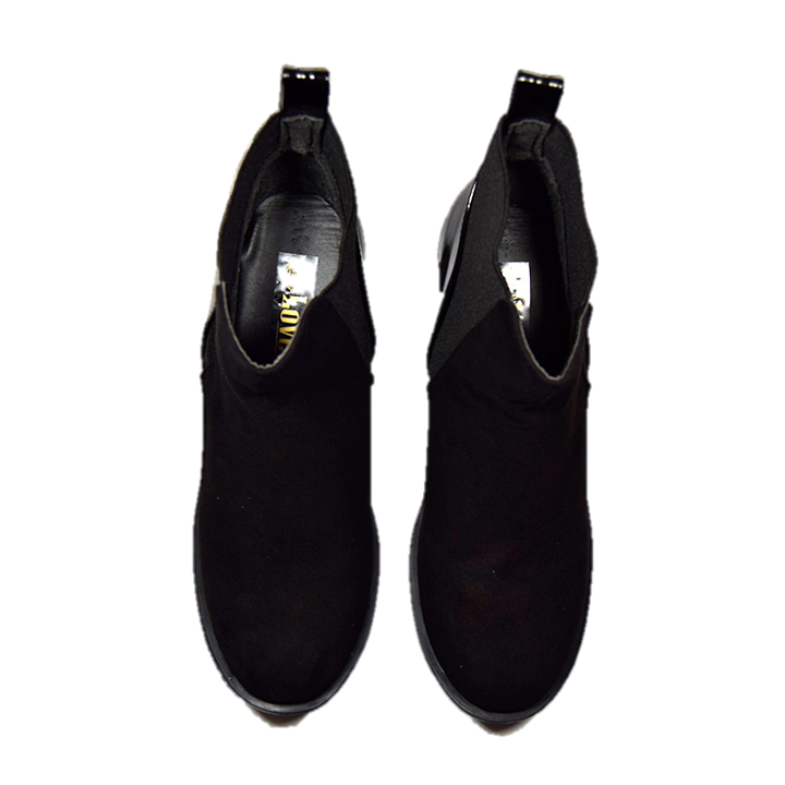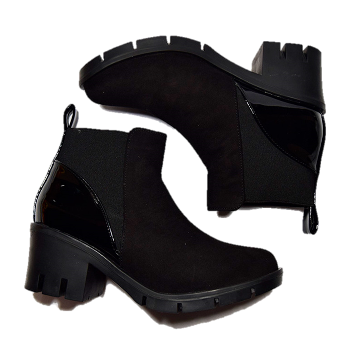 • Color negro Material: Combinación gamuza y charol.