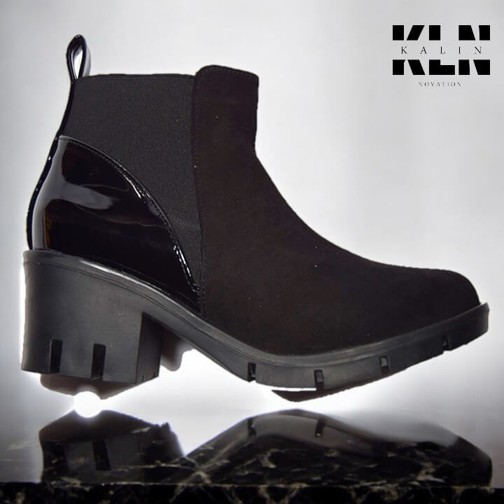 • Color negro Material: Combinación gamuza y charol.