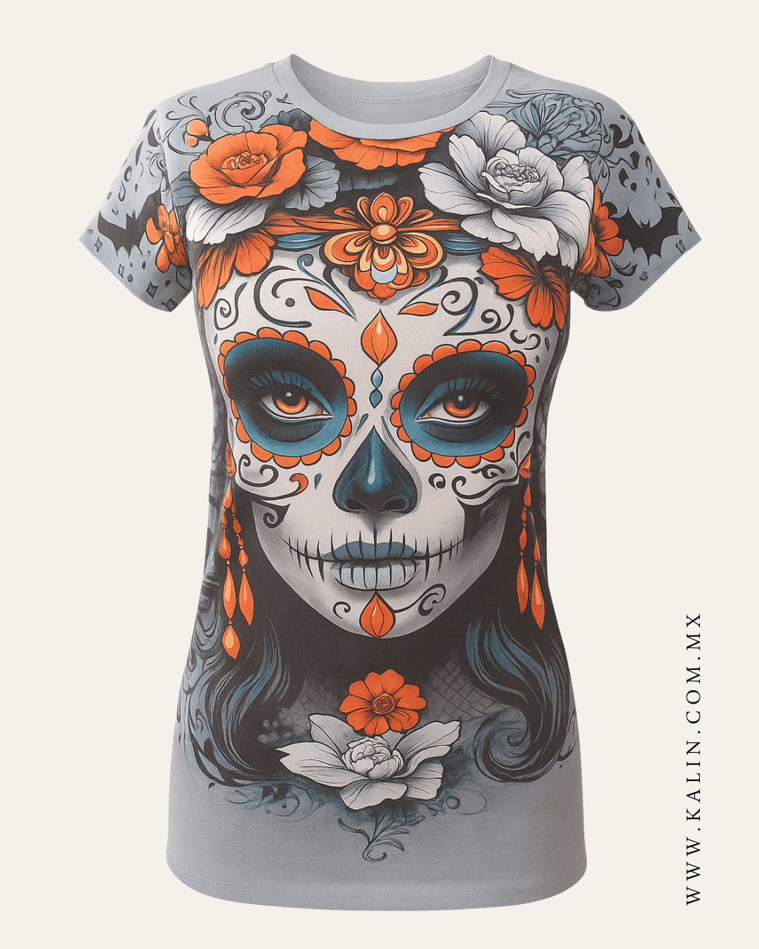 Playera Catrina Rosas Blancas Y Rojas