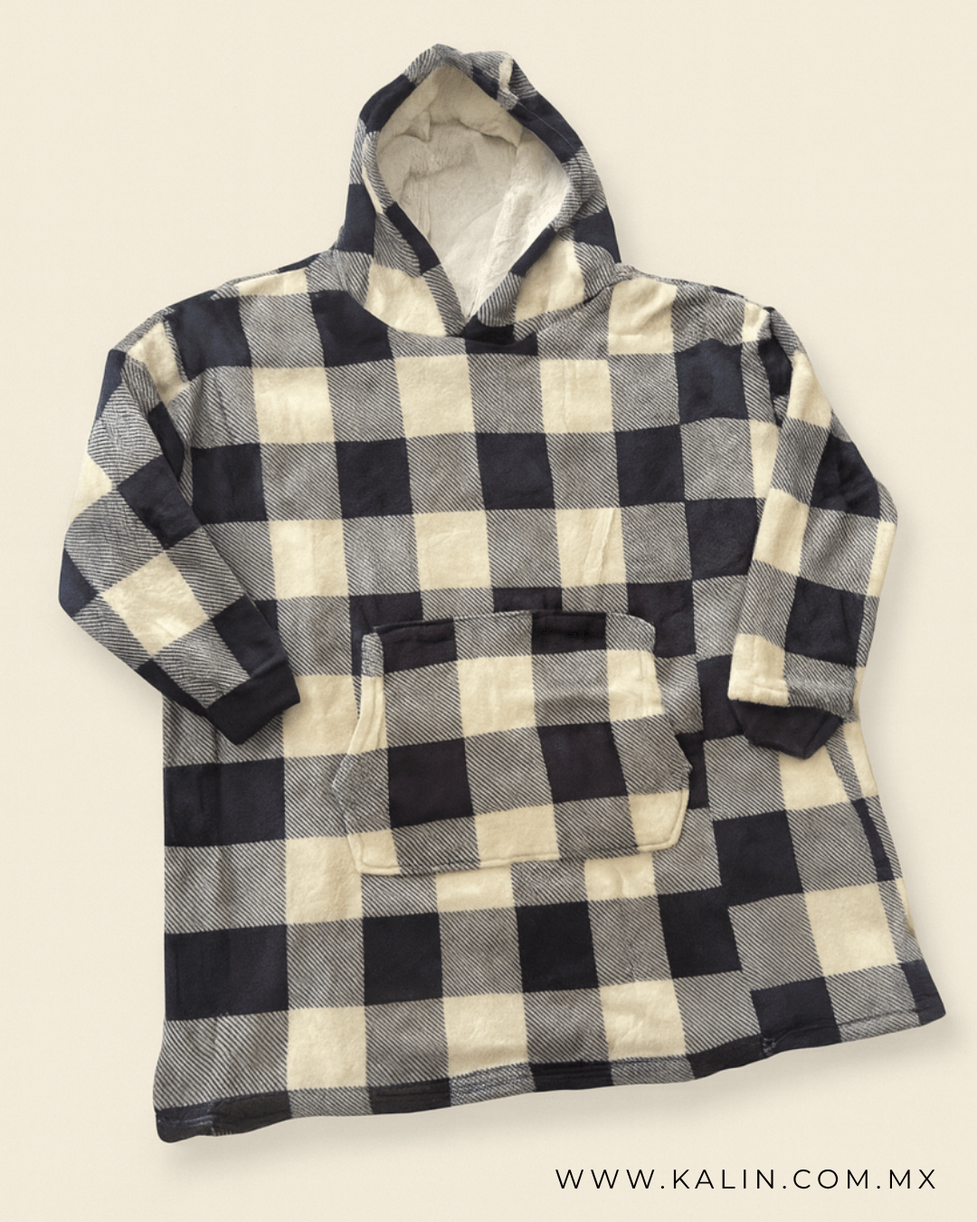 • Material: Afelpada por dentro Diseño: Cuadros Gorro y Bolsa Frontal Talla: XL Unisex