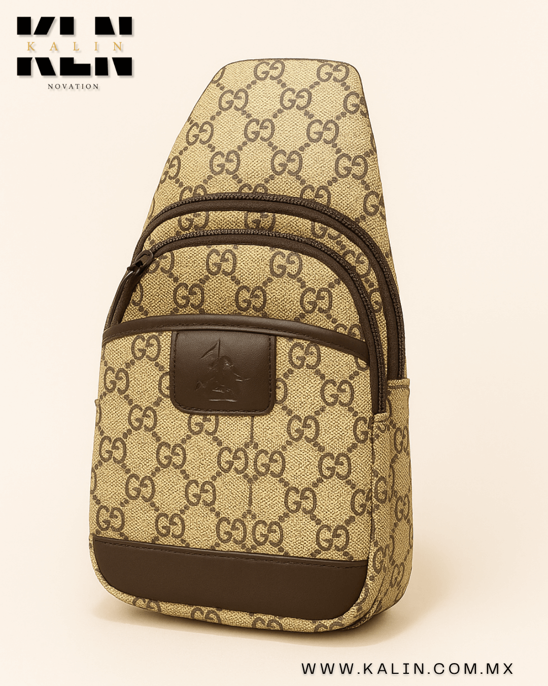 • Color: Beige con café oscuro Dimensiones: 32 cm de alto x 20 cm de ancho Material: Sintético Otra información: Varios compartimentos