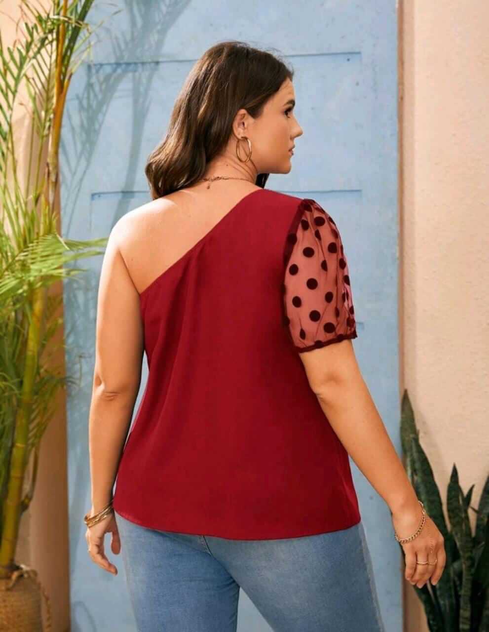 Blusa Vino Con Diseño De Manga Con Transparencia