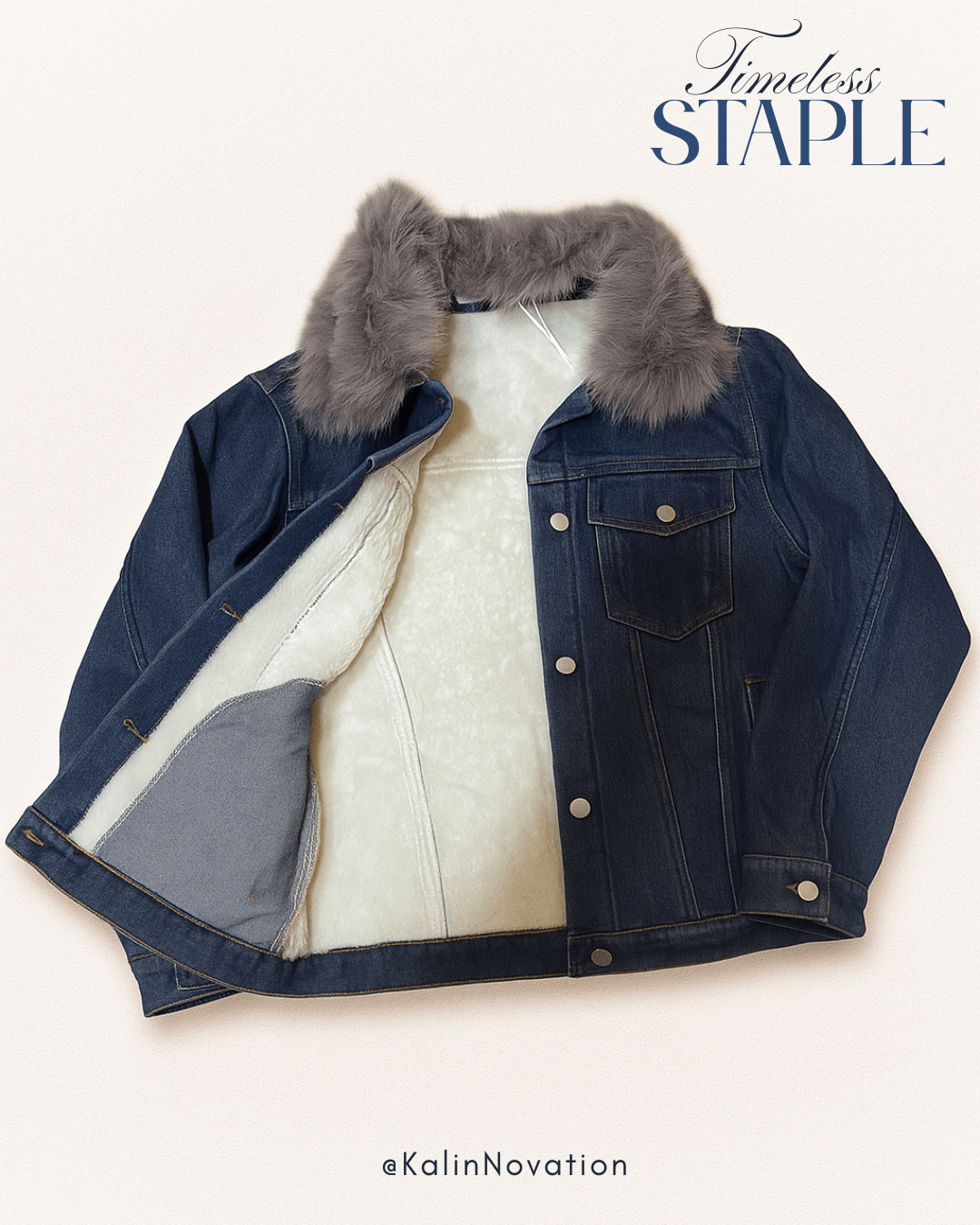 • Talla: Grande Tela: Mezclilla azul afelpada con cuello peludo desmontable Color: Azul