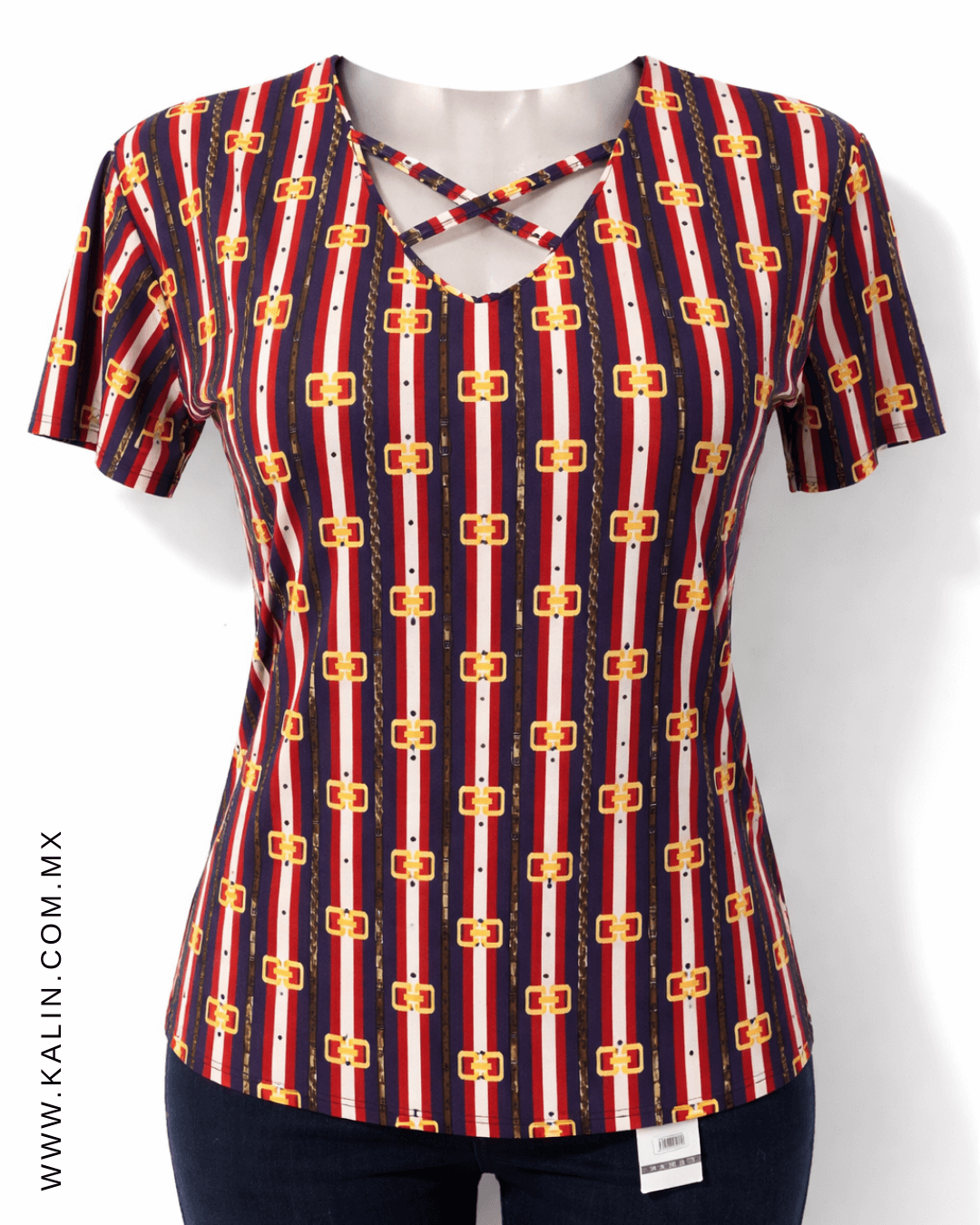 Playera Azul Líneas Amarillas - talla/color Mediana